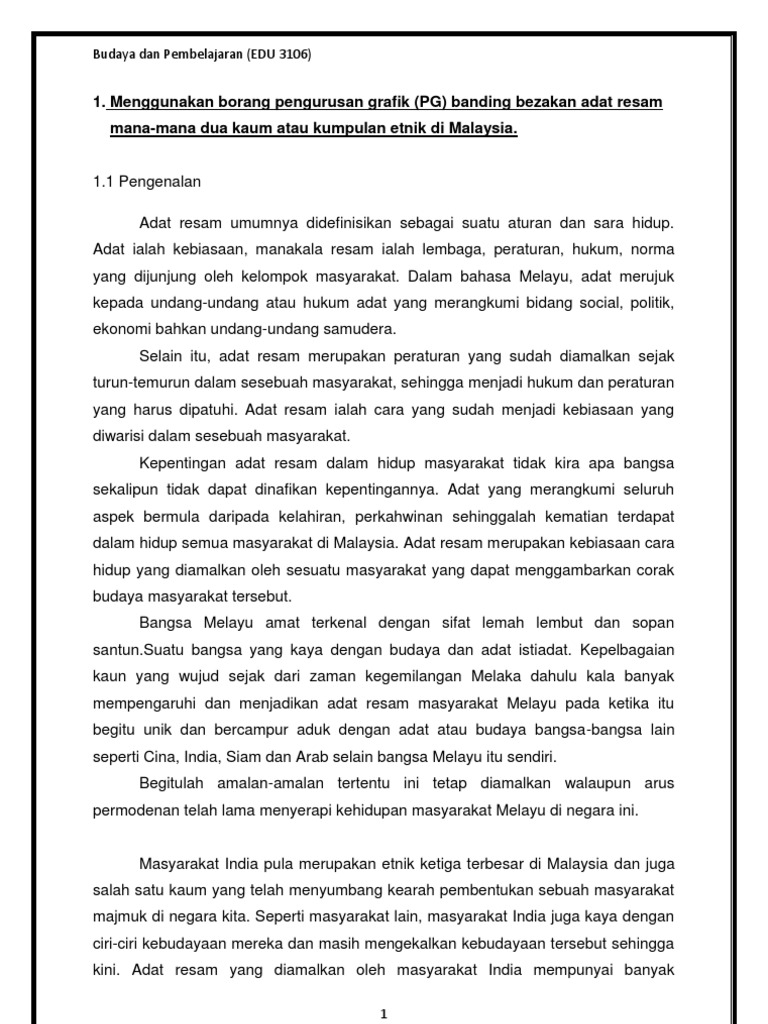 Para pelancong akan lebih tertarik untuk mempelajari budaya dan adat resam rakyat malaysia disebabkan keunikan masyarakat kita yang berbilang. PENINGKATAN TAMADUN 1 Latar belakang tamadun a Apakah. Pernah dengar tentang mereka.