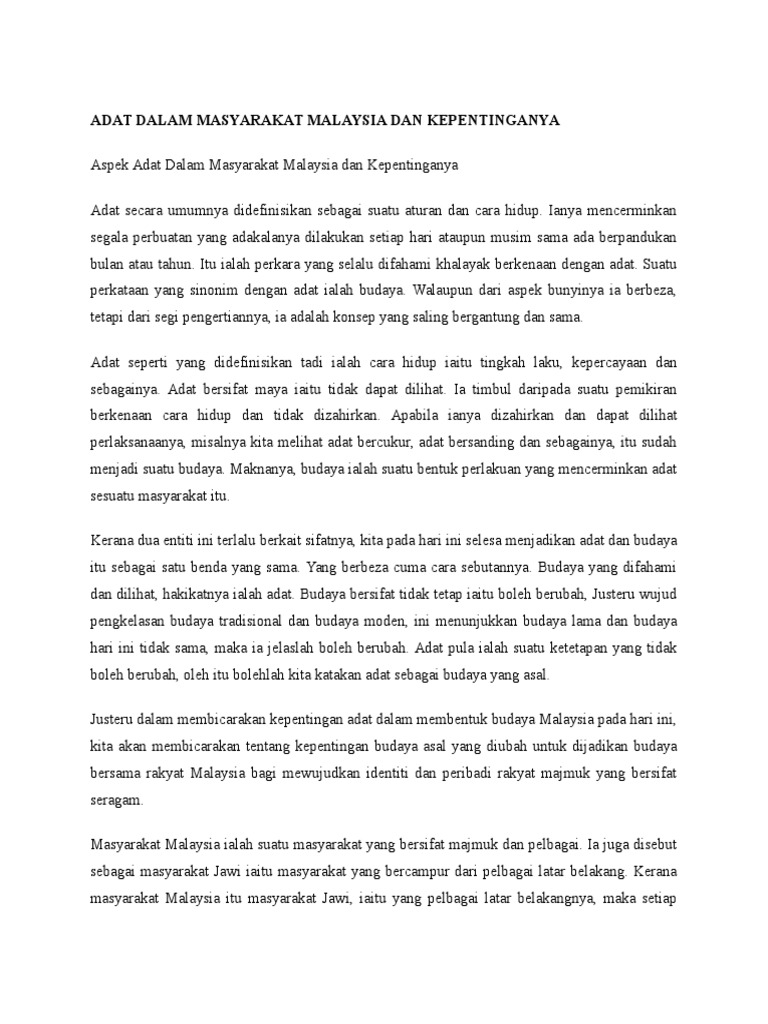 Adat Dalam Masyarakat Malaysia Dan Pdf